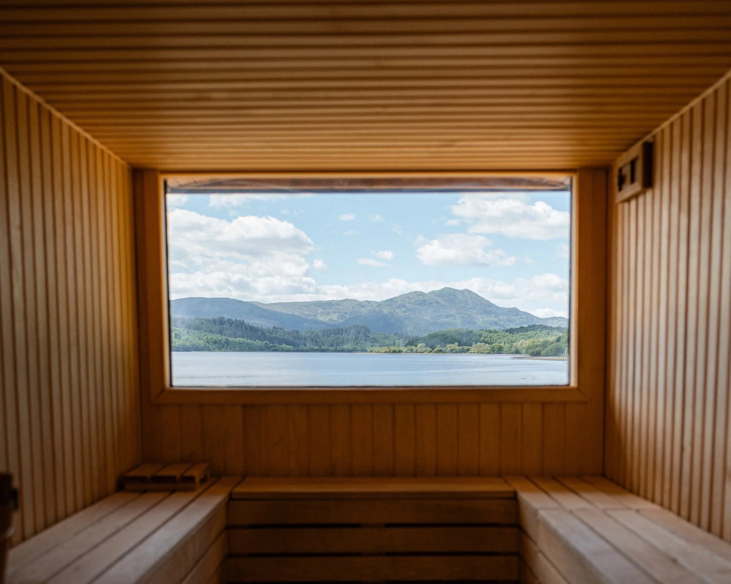 The sauna has a back window with views overlooking the surrounding mountains, showcasing some of Scotlands most beautiful scenery, this is truly one of the most beautiful Scottish wild spas.